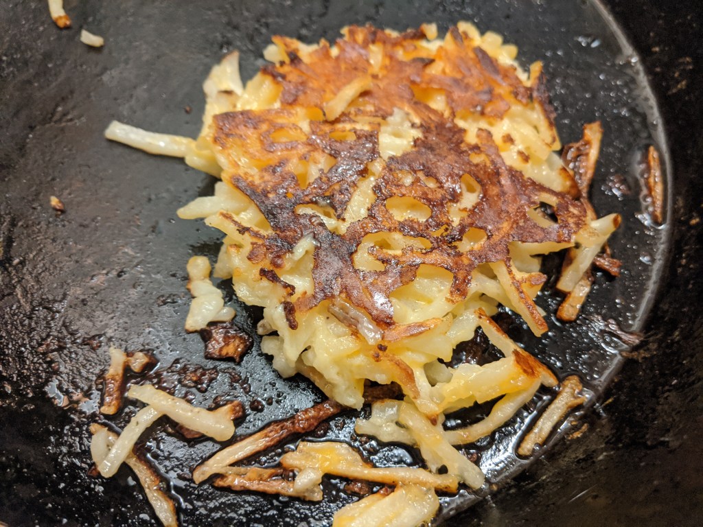 Christmas morning version made with shredded potatoes and simple seasonings