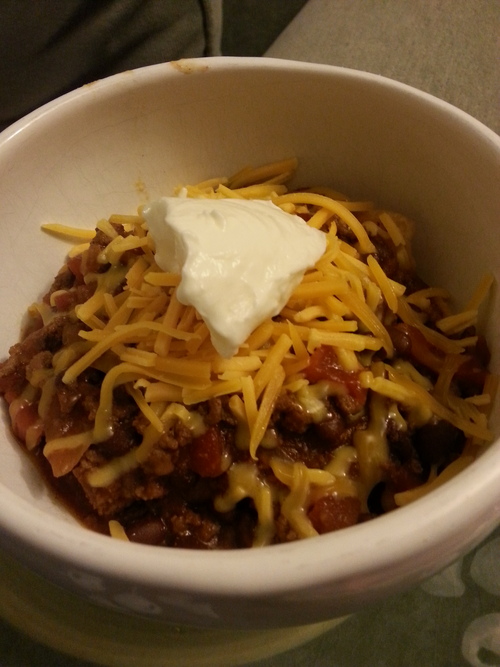 Today was National Taco Day…well we had deconstructed tacos in the form of a soup…We had chili and it was good stuff. From my wife’s recipe blog Black Bean Chili.