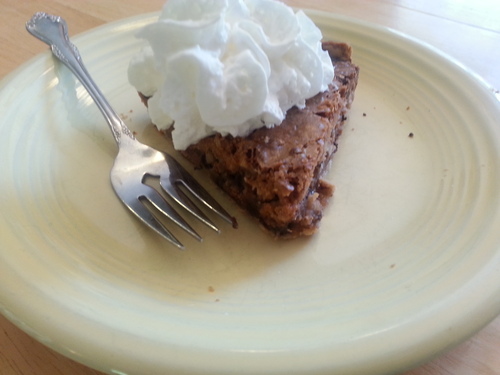 I don’t bring this pie to family gatherings, because it could kill both my mother (who can’t have nuts) and my mother-in-law (who can’t have chocolate)! But it’s delightful for the first Saturday in May while watching horse racing on TV.