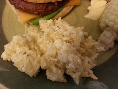 *(The use of dill weed and chives in this recipe satisfies my husband’s love for dill-pickle-and-onion-laden potato salad AND my dislike for anything crunchy in my potato salad.)
