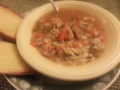 *(You can also use 1 lb uncooked chicken breast pieces; just remove, shred, and place back in pot when adding orzo.)