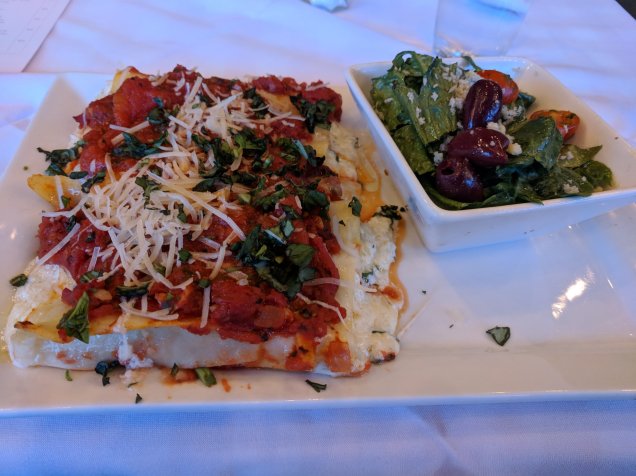 Our house is on a secluded hill in a busy neighborhood; so even though there are children nearby, they rarely venture out way. Thus, we have taken to doing fun things on Halloween, when many people are out trick-or-treating or at parties. Tonight, I went to donate blood (hubby works for the local blood bank), and then we stopped at the newest Italian restaurant in town, Red Sauce. It was unique and warm and delicious, as evidenced below! I encourage my local friends to visit there soon.
