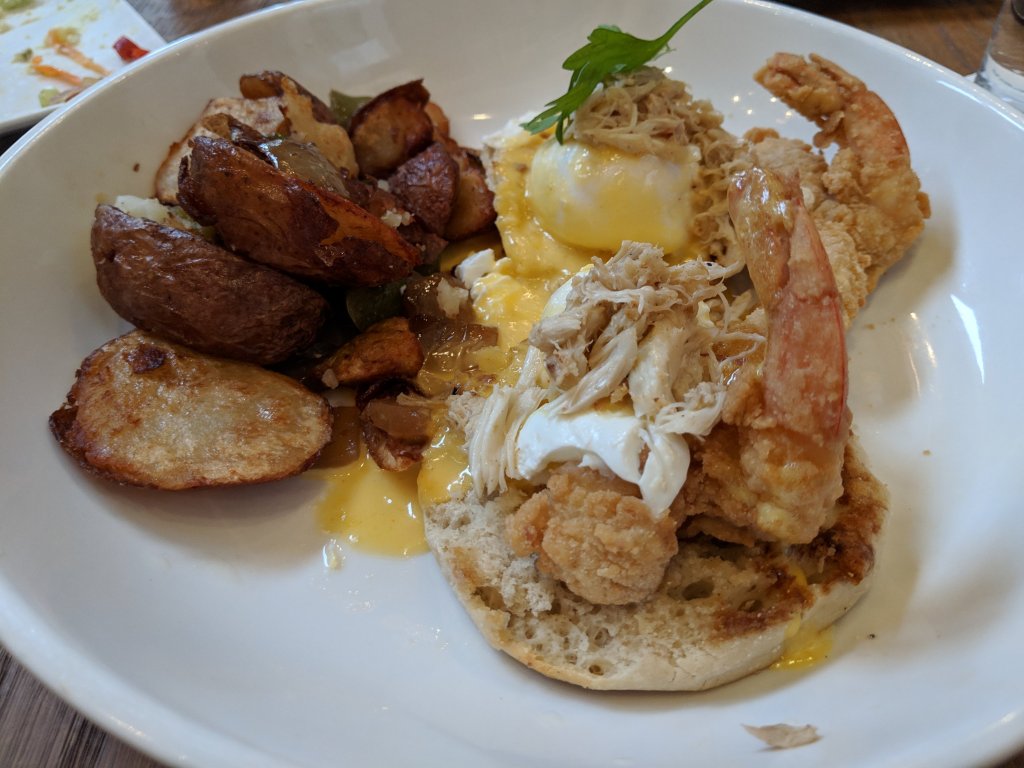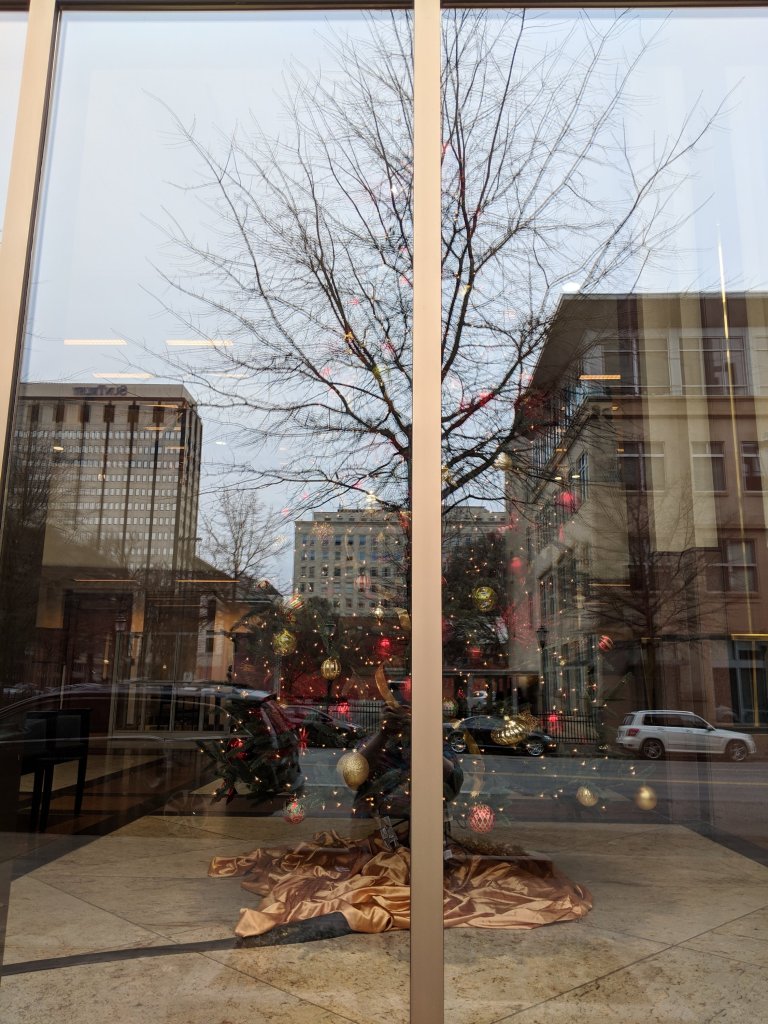 As stated last year, our tradition the last few years has been dining out for lunch or brunch on New Year’s Eve and coming home afterwards to avoid the crowds and traffic. This year with the day falling on a Monday when we are both scheduled to work, we opted to go out on Sunday the 30th after church, and have appetizers and bubbly at home as we wait for the ball to drop. We headed to the most iconic location in our city, the Chattanooga Choo Choo, which has recently undergone some updates with new restaurants and shops and converting some of the hotel rooms to apartments, to have brunch at Stir. This casual but chic restaurant serves familiar dishes with unique twists, along with a wide variety of cocktails. We both enjoyed eggs Benedict dishes (mine with shrimp and crab, his with country ham), $2 double mimosas, and their complimentary brunch bar with sides and pastries. After strolling through the Grand Terminal and grounds to see the holiday decorations, we went across the street to the Wildflower Tea Shop and Apothecary and Locals Only Chattanooga gift shop next door before ending our day with the holiday window displays at the Electric Power Board. It was a great addition to our holiday week!