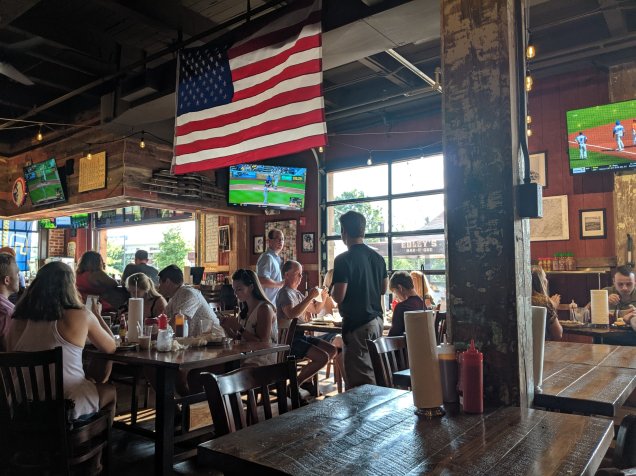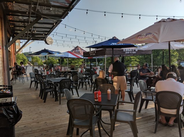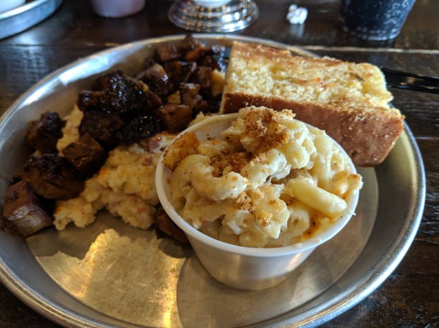 Every year, our city has a music festival, Riverbend, which culminates in a special fireworks display over the river. Some years, if we’re not not excited about that night’s performers, we’ll find a different spot to hang out and avoid the crowds but still enjoy the fireworks. This year, we had dinner at Edley’s, a new barbeque restaurant across the river; and we were not disappointed! I had burnt ends with spicy grit casserole and mac & cheese, while hubby had the more traditional brisket with baked beans and slaw. The decor is part rustic, part funky (a cross between two old favorites Waycrazy’s and Mudpie) and they had live music by local artist Gino Fanelli on the deck. We found a spot nearby where we set our camp chairs for a great view of the fireworks. We’ll definitely be back for more barbeque (and music) soon!