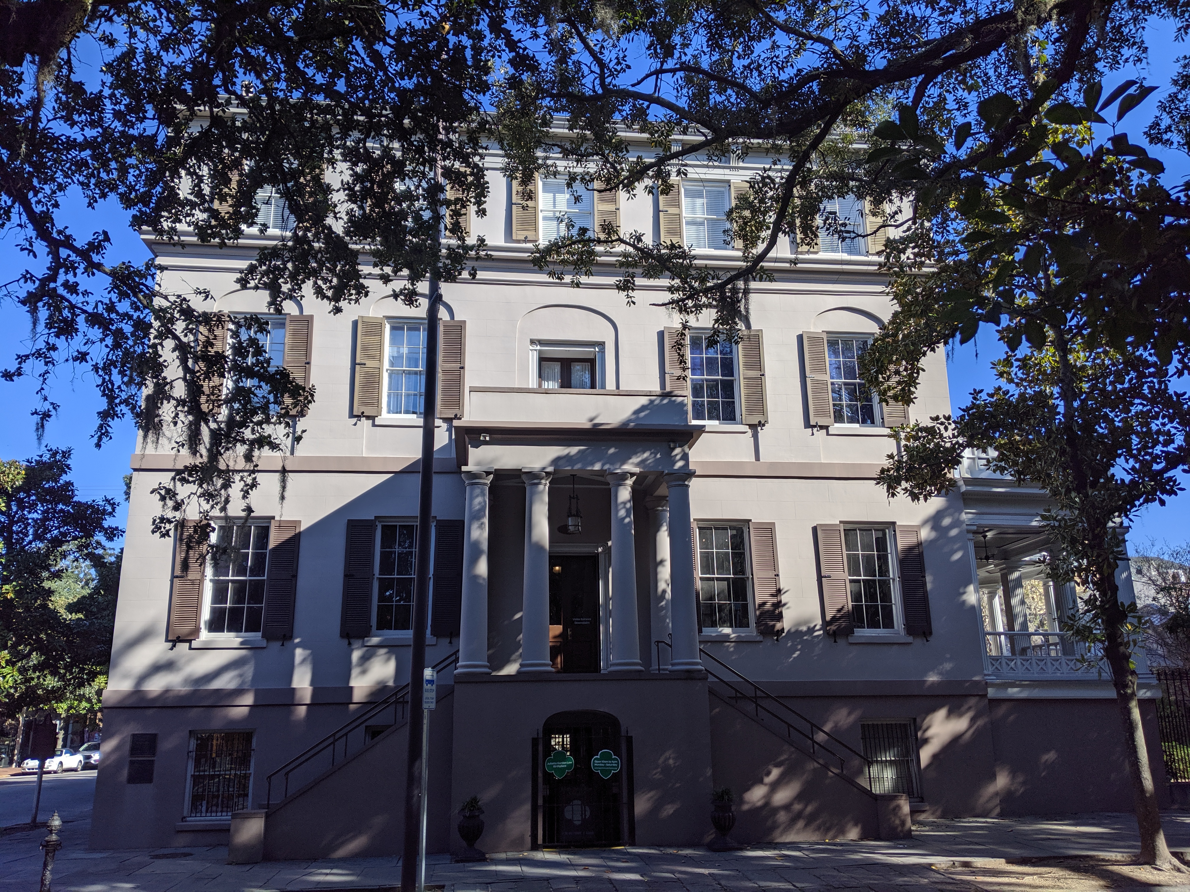 The hubby and I decided to get away for the long Veteran’s Day weekend to beautiful Savannah, Georgia. His nickname since his youth group days has been T-Bird, so I found us a wonderful retro hotel named The Thunderbird Inn. We are all about supporting local businesses when we travel, and this hotel was perfect. We dined at great restaurants as well, from the longtime local institutions to the new and trendy. And I was thrilled to tour the Juliette Gordon Low house (birthplace of Girl Scouting) and see the iconic Mercer-Williams House and Bird Girl statue from the book and film Midnight in the Garden of Good and Evil (known in Savannah simply as “The Book”), as well as many of Savannah’s historic squares and houses of worship. We hope to be able to return in the near future!