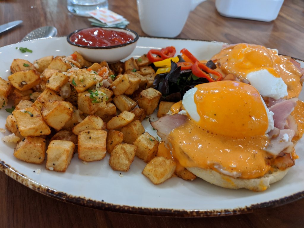 Every year near Christmas, the owner of the company I worked for takes the staff out for breakfast. This year, the venue was The Whitebird restaurant inside the elegant Edwin Hotel. Since Friday was my last official day of employment, it was nice to be included in this special occasion; especially at a spot I’ve never been to, but heard much about. The meal did not disappoint: I thoroughly enjoyed my Whitebird Benedict (country ham and sous vide eggs on English muffin with roasted red pepper hollandaise) with roasted potatoes, and was even able to bring home a coffee and one of their famous biscuits to enjoy while I work on my classes. I’m very grateful for almost 4 years at this woman-owned-and-operated business.