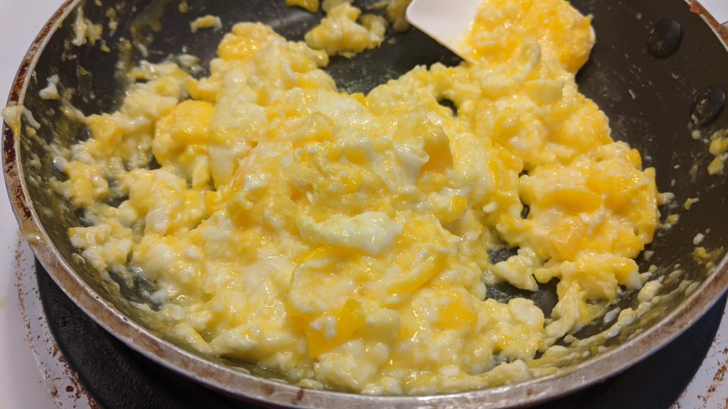 This technique was shared during a Shrove Tuesday pancake supper over Zoom by our parish rector. My husband’s favorite eggs are scrambled, whereas mine are over-easy to over-medium; we found this dish to both of our liking.