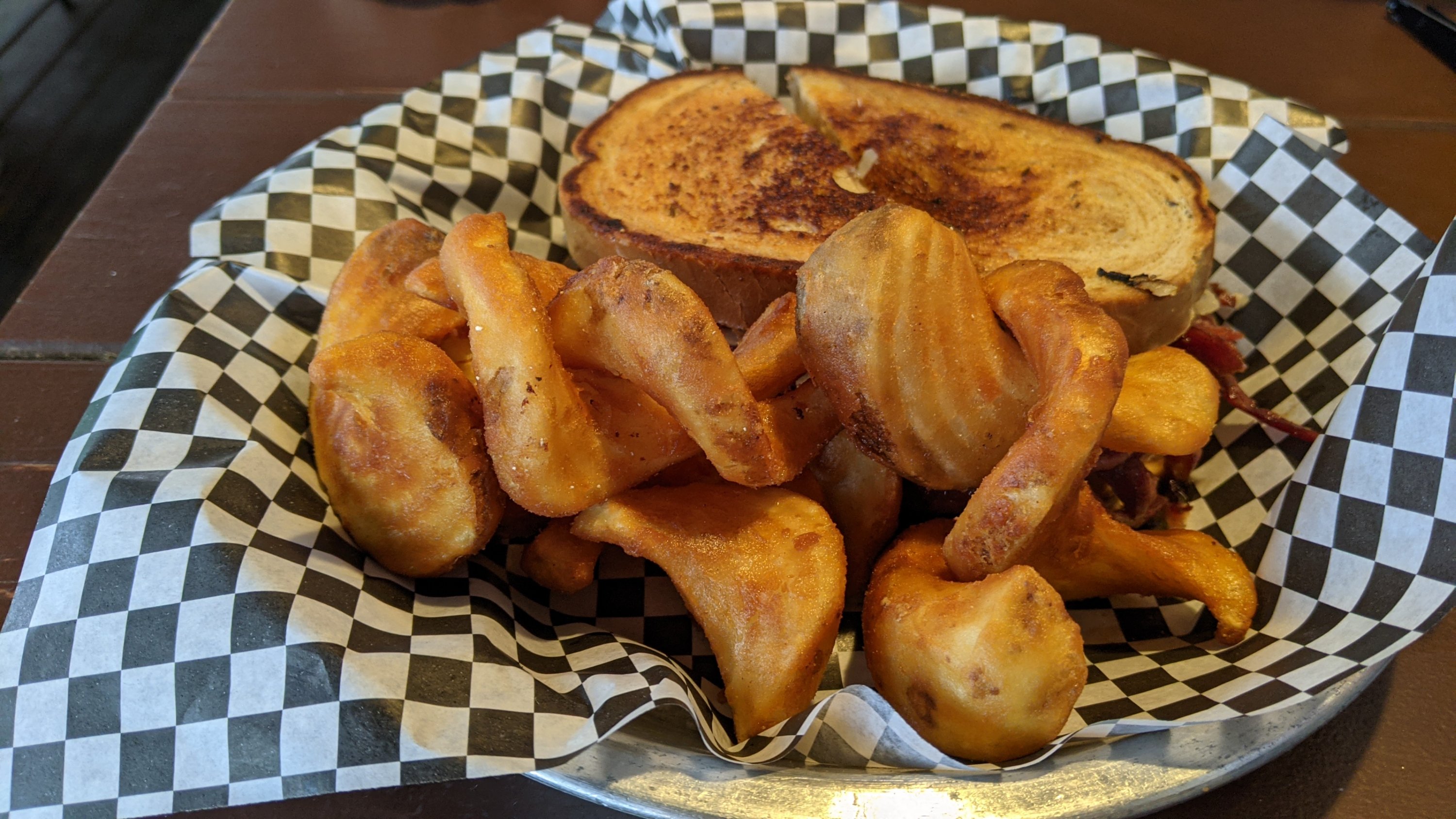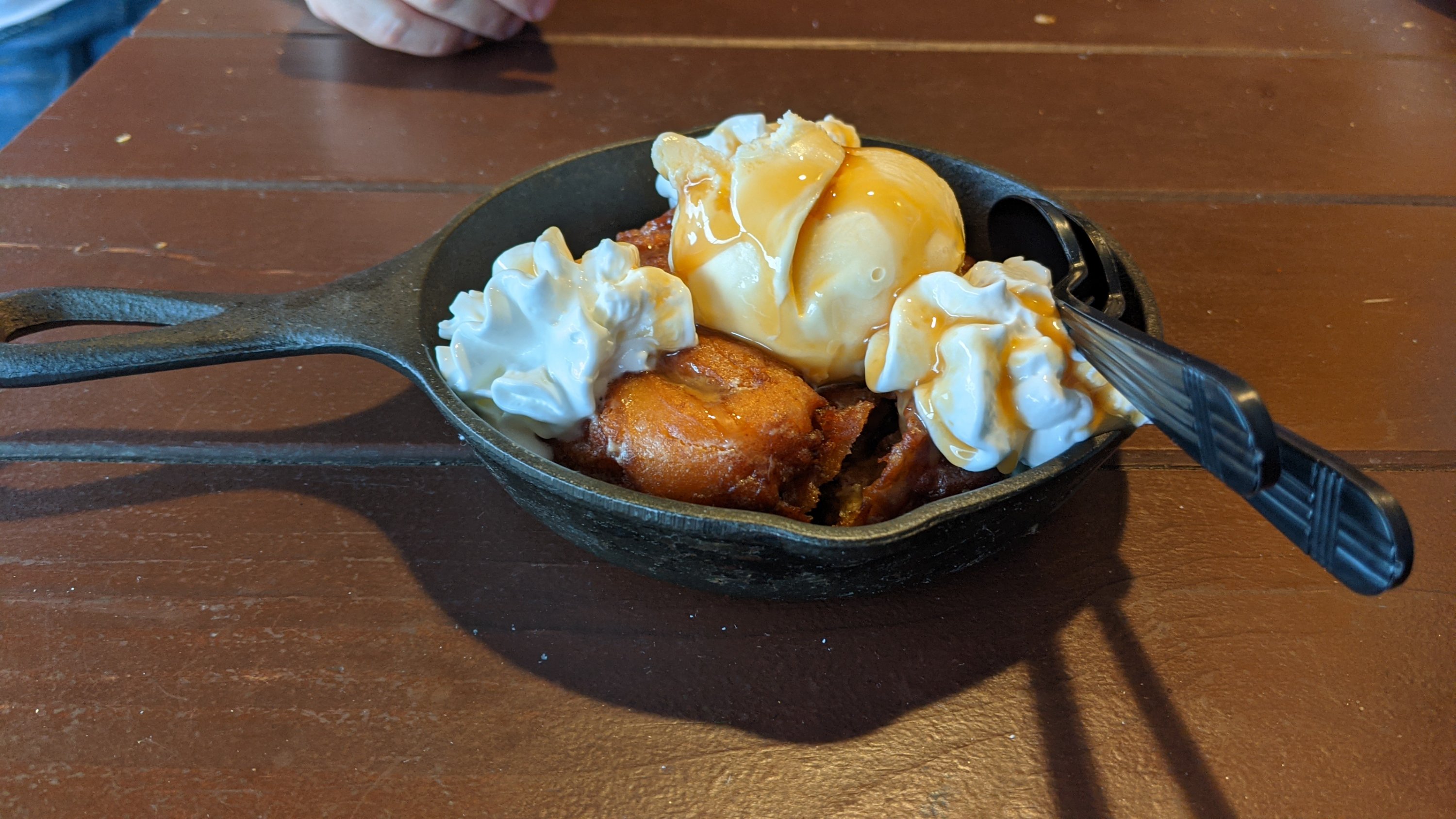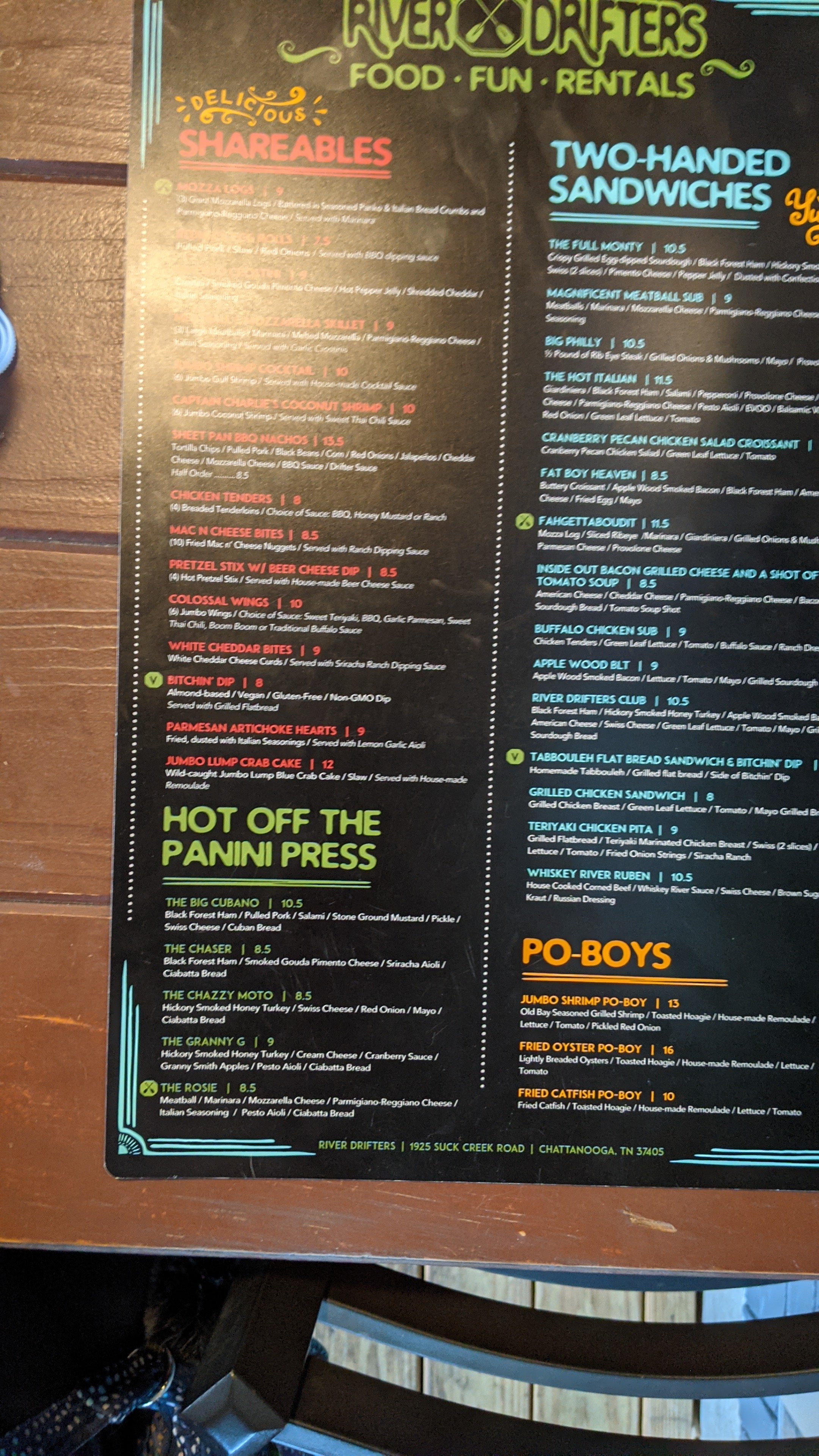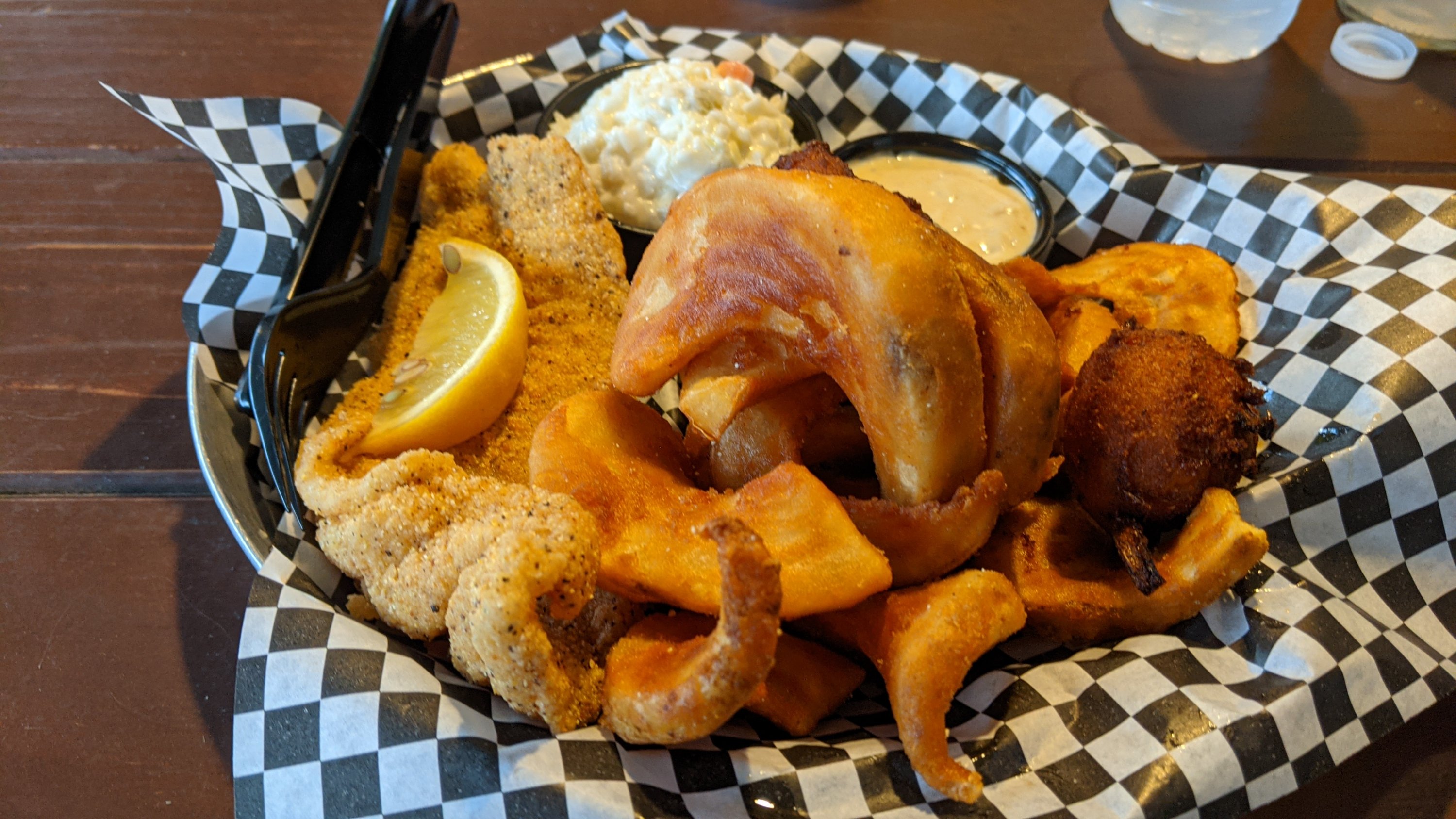 To celebrate our first dose of the Pfizer COVID-19 vaccine this week and the warmer spring temps, we went to a nearby restaurant on the river [that’s been open since 2018 but we didn’t know about until they put up a billboard at the turnoff to our house] that has a nice covered deck for seating. River Drifters is fun, casual, and rustic, but with some seriously tasty and unique food. Hubby pronounced the Reuben one of the best he’s ever had, and the catfish with sidewinder fries and hush puppies was equally delicious. We shared an apple fritter with ice cream that was just decadent. The chef and the owner both came out to meet us and ensure we were satisfied with everything, and told us about the corned beef (cooked in-house and hand-pulled) and house-made sauces. You can even rent kayaks or paddleboards to explore the river, and they have karaoke and other regular events. We assured them we would be back soon!