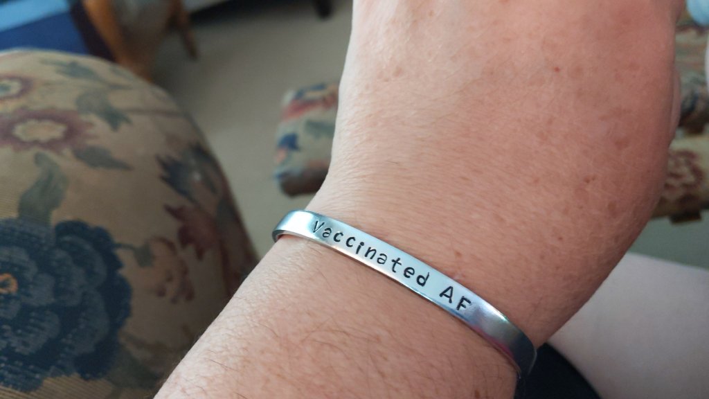 My Favorite F-words April 16, 2021April 16, 2021Laura B Happy Friday! Let’s eat! I couldn’t resist this bracelet from Etsy. I’m proud of my status as a fully vaccinated Level 1c person. Share this: Click to share on X (Opens in new window) X Click to share on Facebook (Opens in new window) Facebook Like Loading... Related