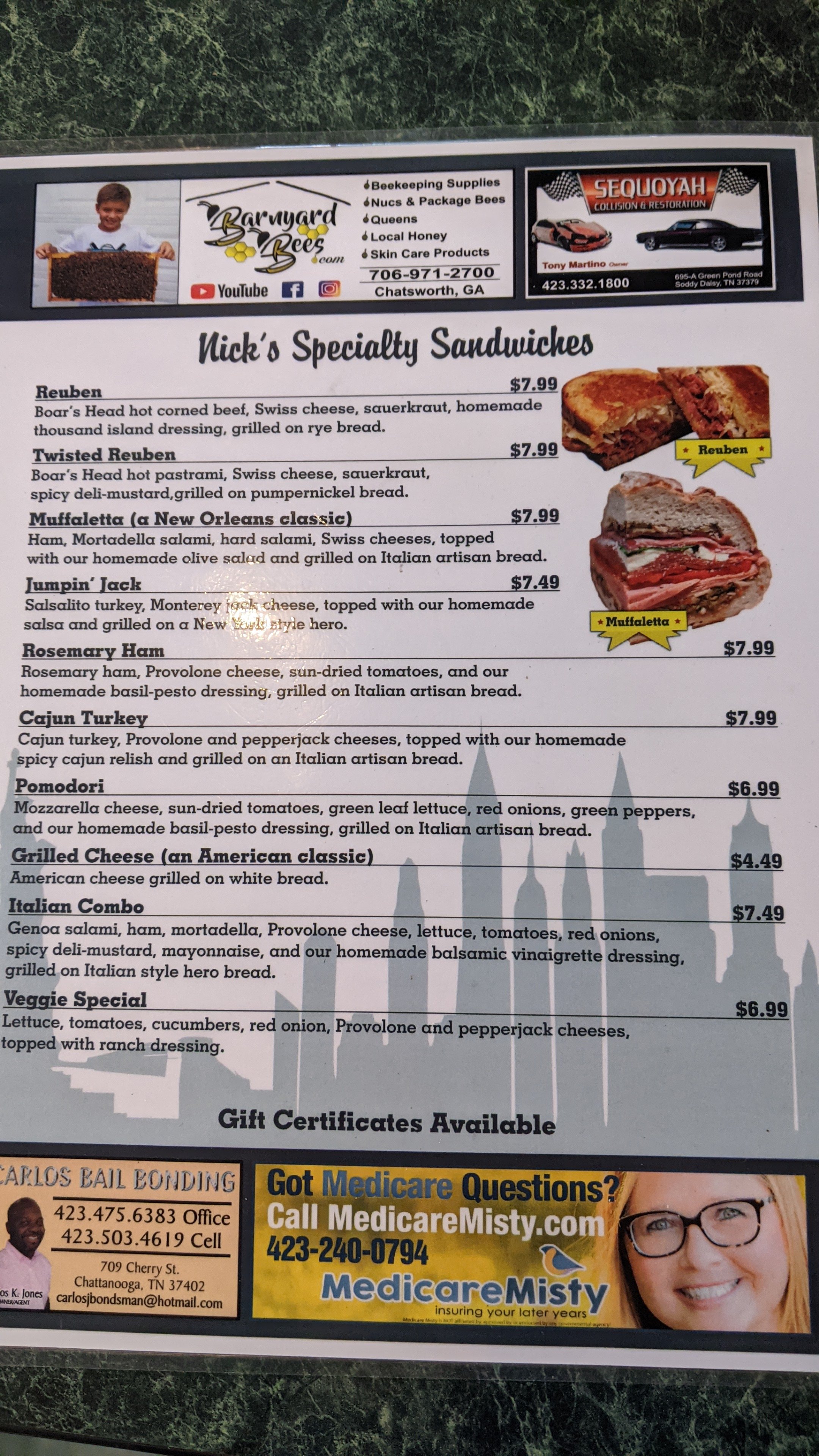 Here in Chattanooga, we have a good number of authentic restaurants to choose from [with a few glaring exceptions — someone please bring us cuisine from the African continent!] Today, we had a late lunch at Nick’s Deli, a local New York deli with great artisan sandwiches and sides. The Reuben and its companion the Twisted Reuben are the ones to beat for all delis (even hubby, the self-proclaimed Reuben connossieur, said so) and sandwich shops in town, and the smoked potato salad was divine. We’ll be there often now that quarantine restrictions have been lifted!