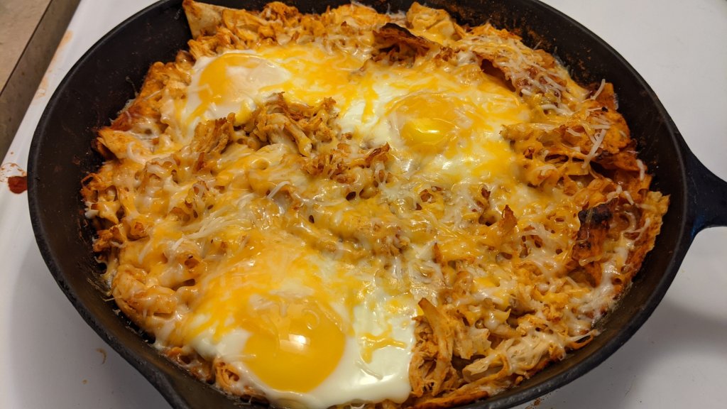 Chilaquiles have become one of my favorite Mexican dishes. While most frequently a brunch dish, I added some chicken to give it some oomph for dinner tonight. Because I am a lazy cook, I did not do homemade chips.
