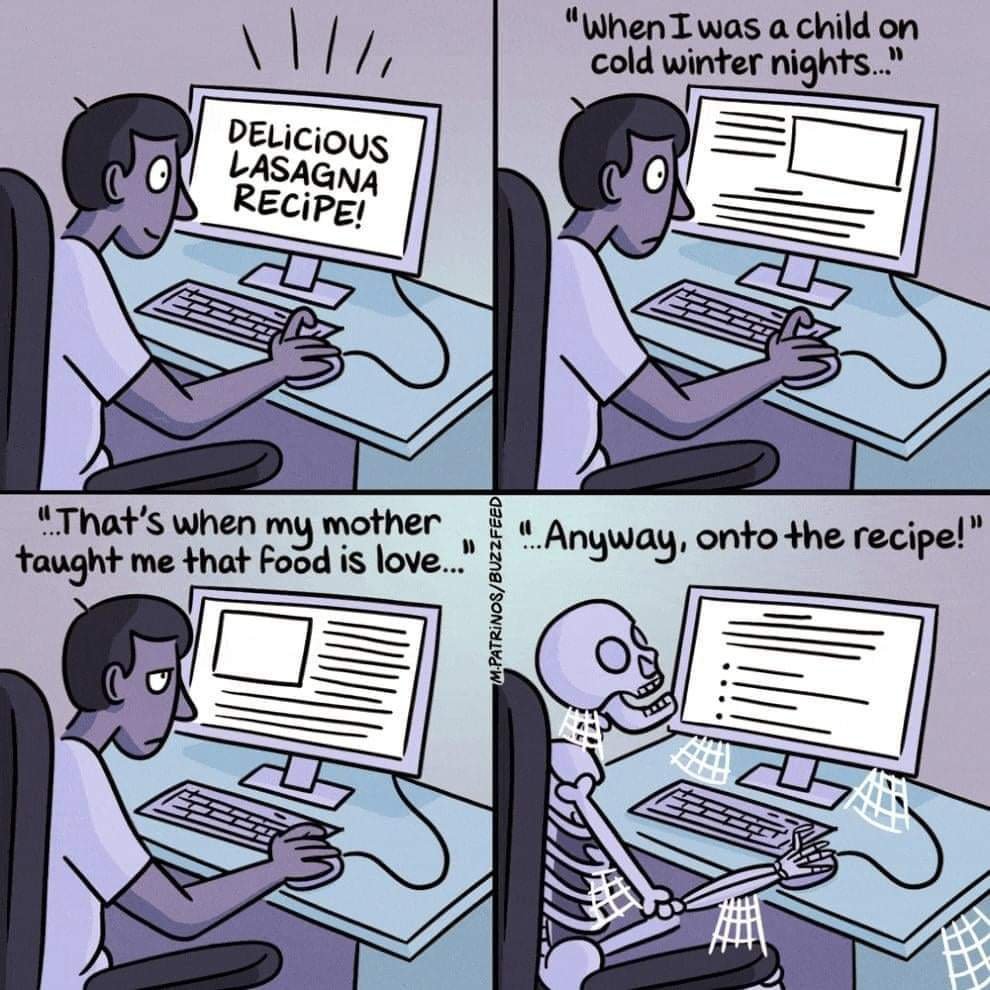 I love reading the story behind the recipe when I am doing research for blog posts. I also enjoy cooking shows where the host/chef shares the history of a dish, or their personal connection to a particular food. And because of this, I like to tell the story or history of connection related to recipes or foods I post here. However, I have come across recipes online similar to the meme above. I promise not to do that to you, my faithful followers. In fact, more often than not, my story comes after the recipe, not before 🤓