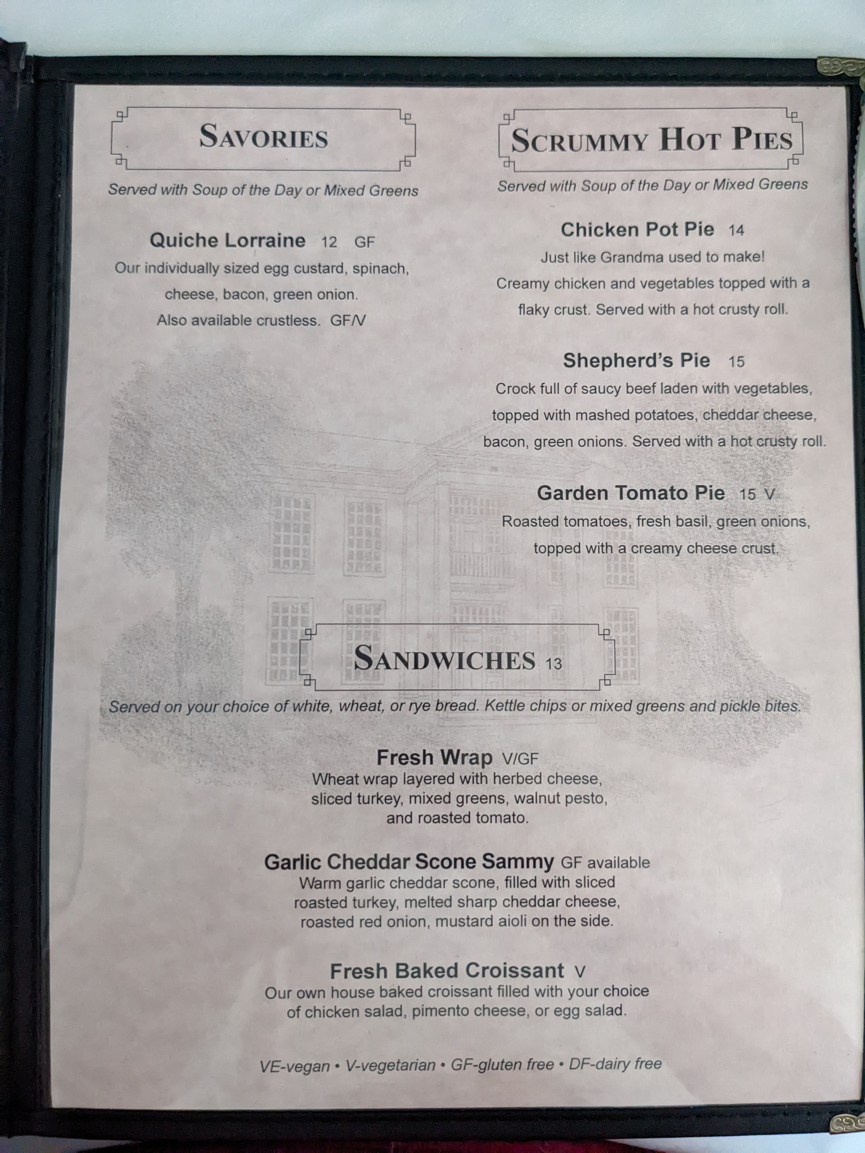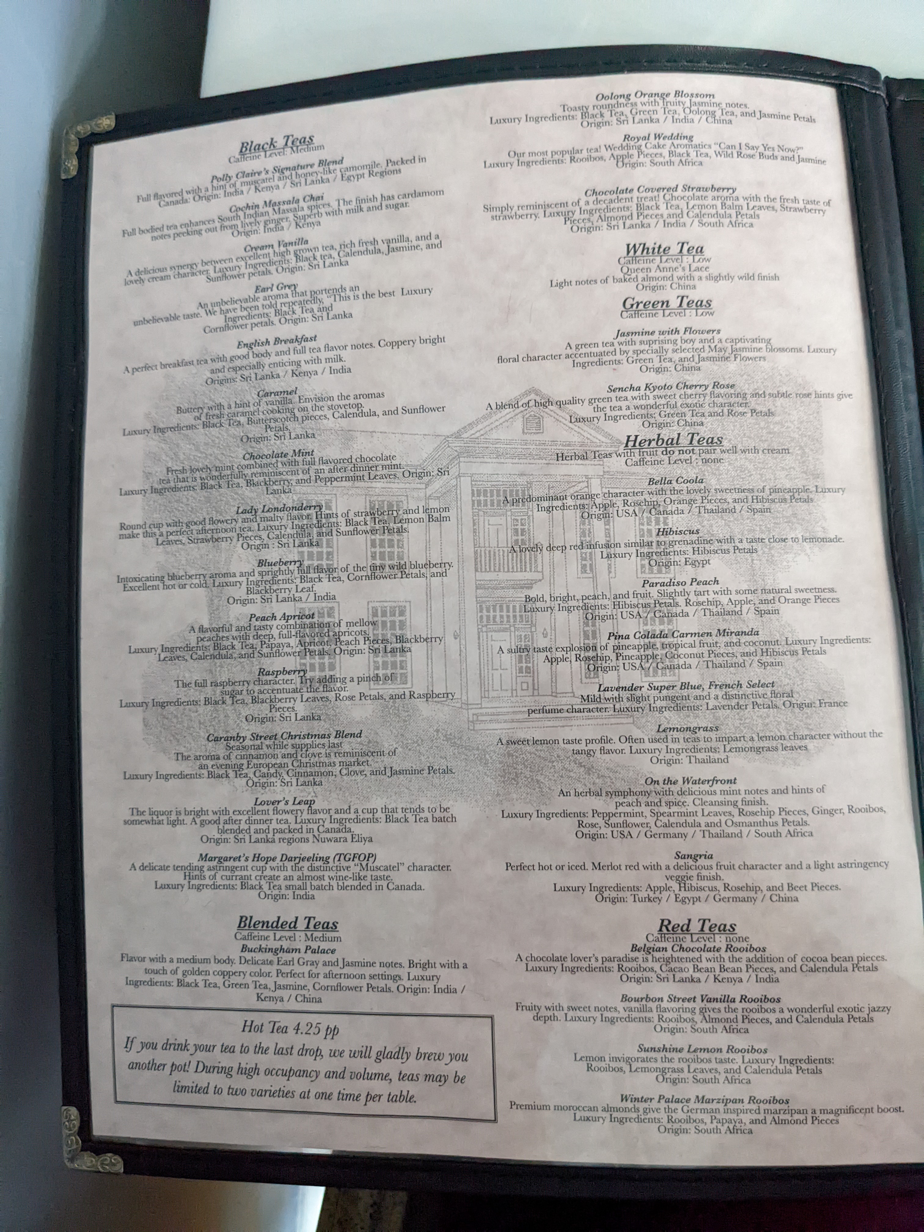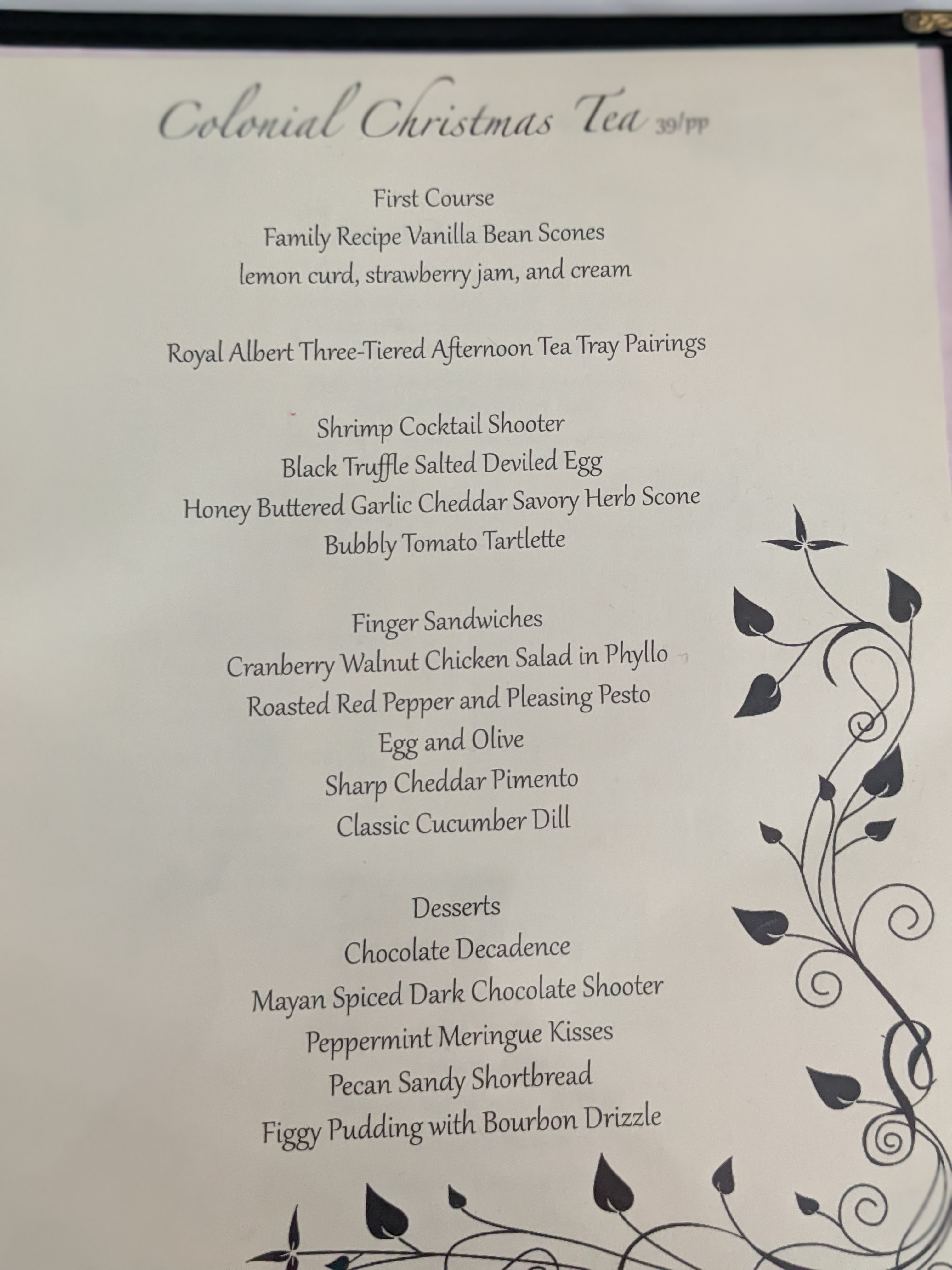 For our monthly girls’ day, my friend Jamie and I went to a local tea room that’s located in the historic Dent plantation house. They had everything decorated for Christmas and made a big fuss over our holiday attire. My turkey and cheddar scone sammy, lobster bisque, and Carnaby Street Christmas blend tea were divine; and Jamie really enjoyed her chicken salad with fresh fruit and Belgian chocolate rooibos. We hope to go back soon! 🎄
