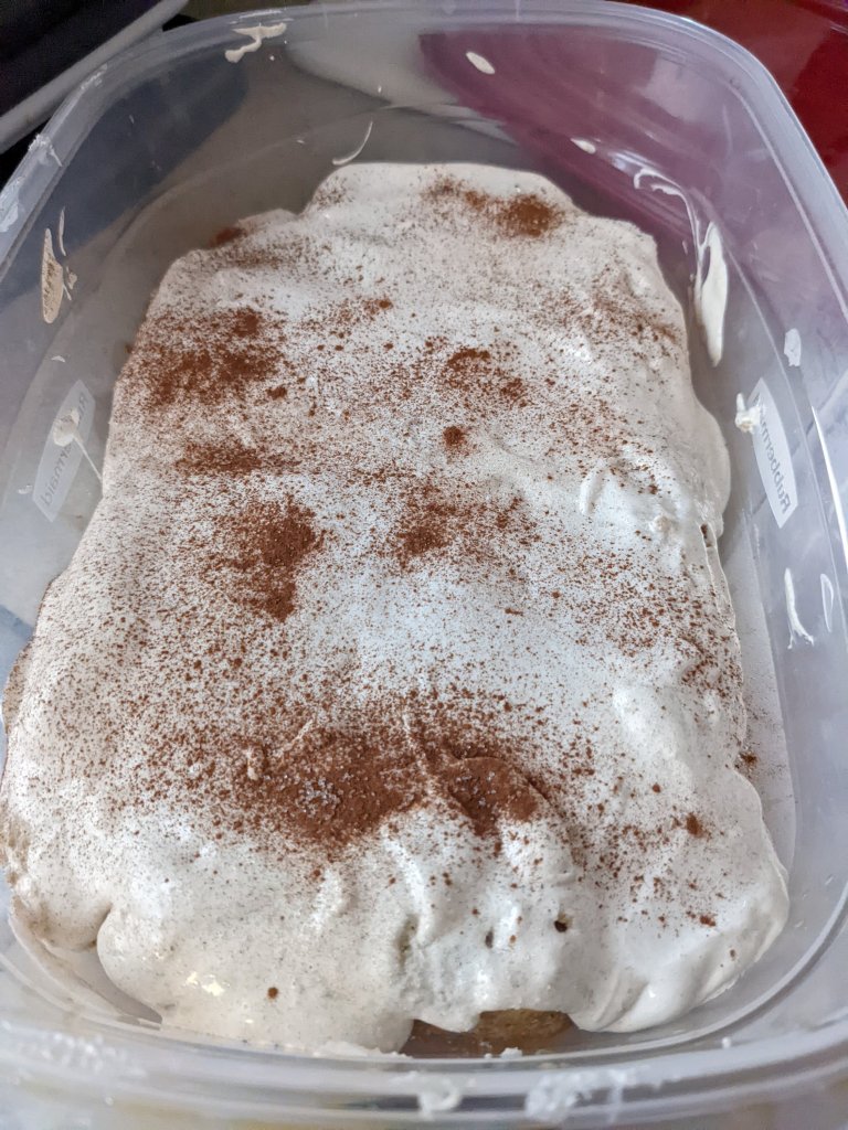 This is not in any way pretending to be the Italian delicacy made with ladyfingers, espresso, fresh marscapone, and shaved fine chocolate. It is, however, an easy and tasty tribute to that dish. Buon appetito!