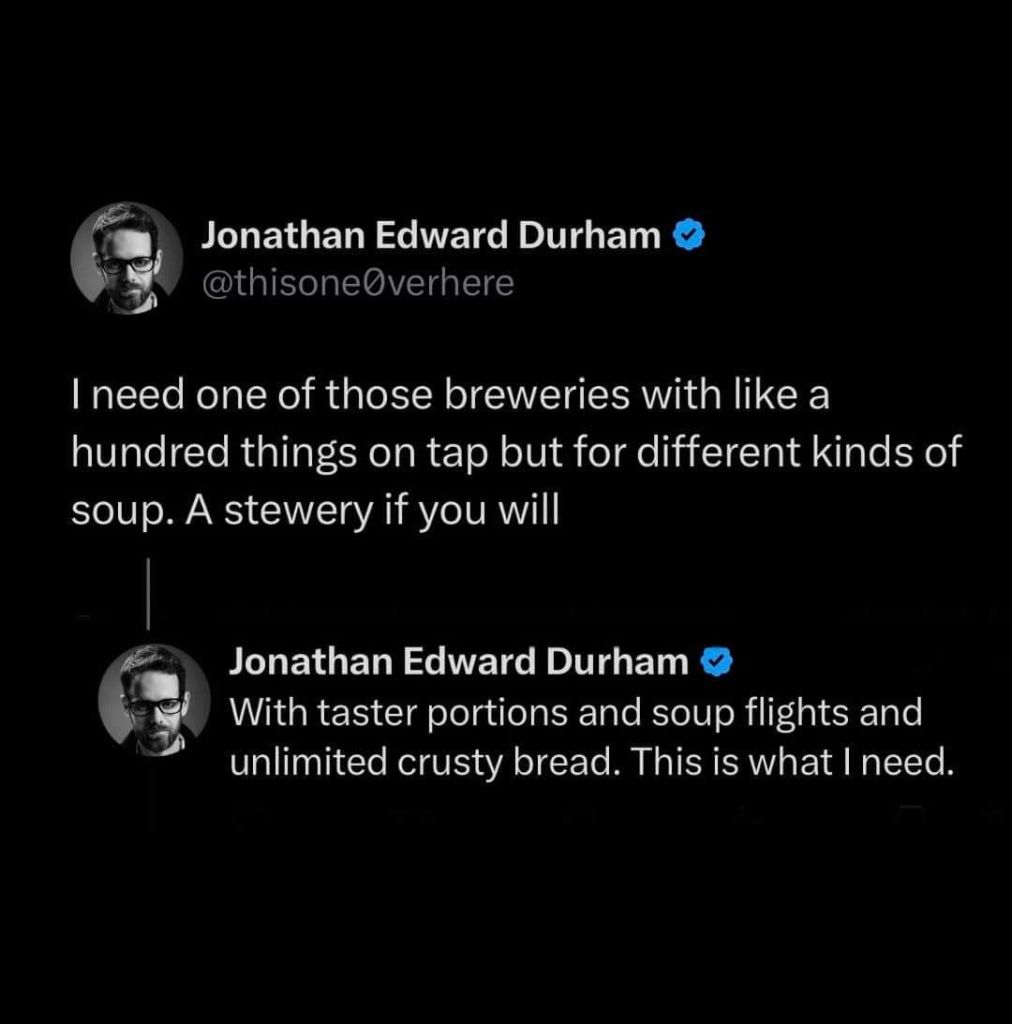 A Stewery November 18, 2024Laura B I love this man’s humor. It’s so dry and quirky. That does not make the above any less profound and wonderful 🍲 Share this: Click to share on X (Opens in new window) X Click to share on Facebook (Opens in new window) Facebook Like Loading... Related