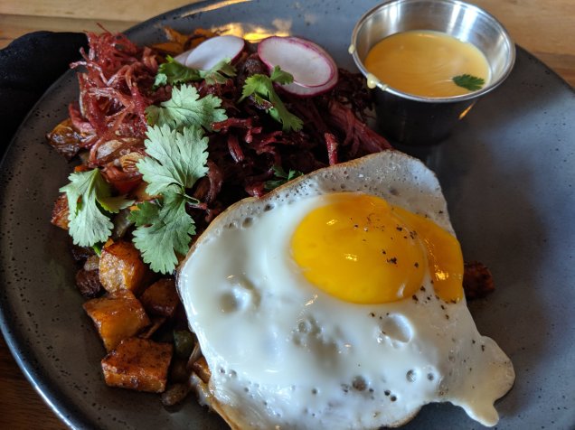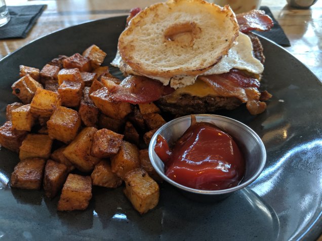 Today is the final day of a 4-day holiday weekend, and the first day in a while we haven’t been needed to help with the in-laws’ recent move. So we took the opportunity to go to brunch at The Flying Squirrel, a local bar that has been on our “to-dine” list for a while, before hitting a matinee of the new Spiderman movie. My “Luther” brunch burger with spiced roasted potatoes and cold brew coffee were excellent, as was hubby’s roasted potato hash with corned beef (one of his favorite dishes for breakfast). I am already ready to come back and try the shrimp & grits!