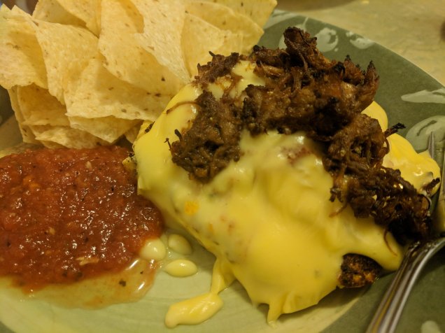 But what to do when both of these “holidays” fall on the same day? Enjoy the opportunity for hybrid cooking, of course! I did make the classic Derby Pie and Mint Julep Iced Tea, but I shook things up with the main dish: corn cakes (my Mexican Flag Cornbread made into pancakes), cilantro-lime chicken, queso, salsa, and chorizo. Muy bueno!
